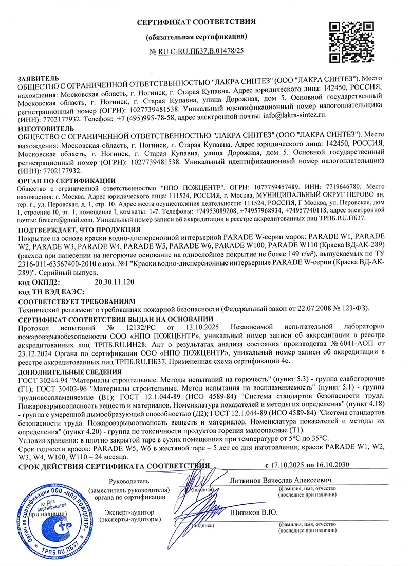 - Долговечность интерьерного покрытия – не менее 10 лет