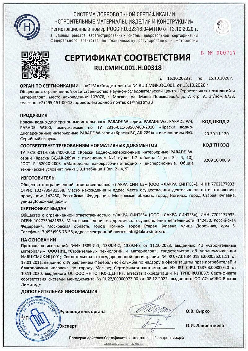 Краска PARADE Classic W4 — это продукт от надёжного бренда, созданный для отделочных работ внутри помещений со стойкостью к загрязнениям. Краска входит в категорию моющихся покрытий. Это один из лучших лакокрасочных материалов, представленных в нашем каталоге, с отличным соотношением цены и качества. Производится в России, соответствует строгим требованиям безопасности и санитарных норм.