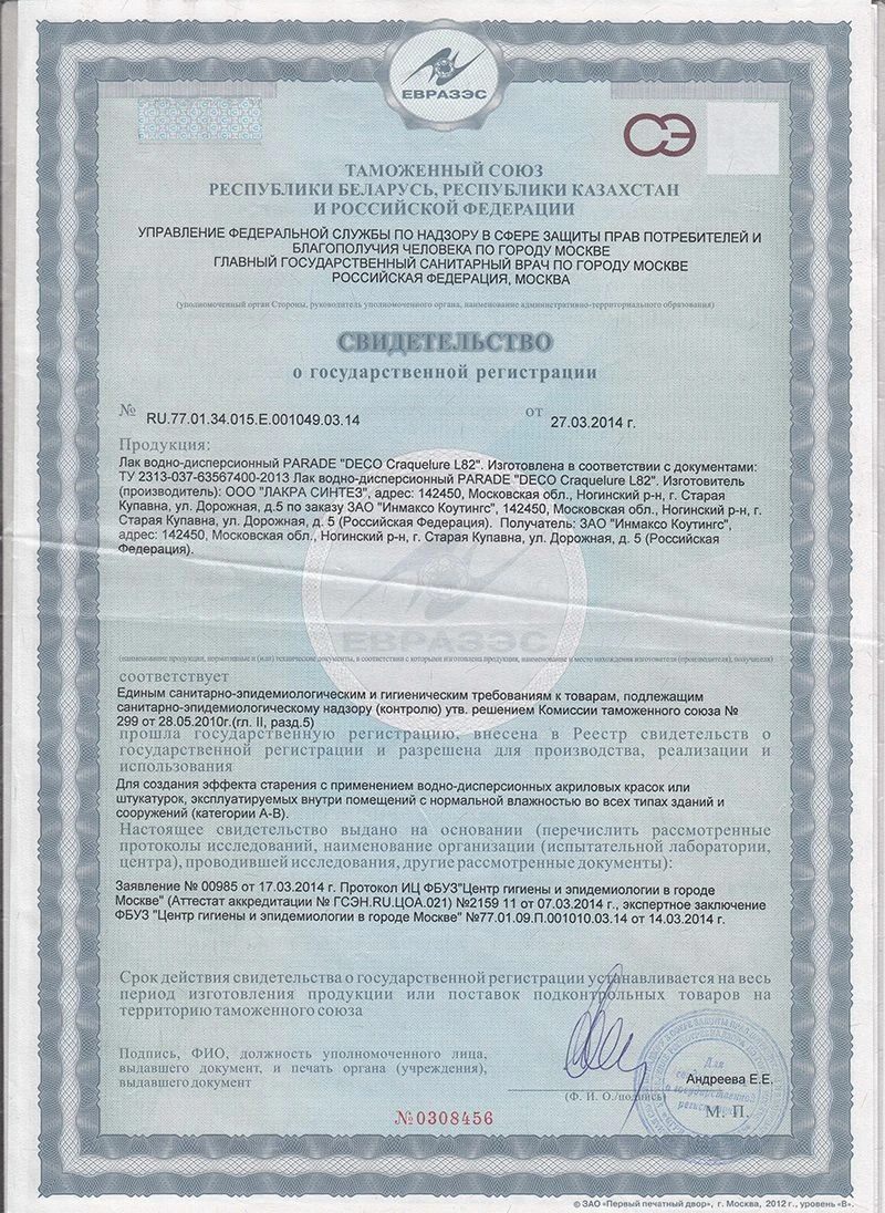Готовый к применению лак для создания декоративного эффекта растрескавшегося покрытия (эффект «кракле») с применением акриловых красок или штукатурок. Идеально подходит для использования с интерьерными ВД красками PARADE (W3, W4, W100, E2, E3, E7, E20), декоративными покрытиями PARADE Tessuro S82 и PARADE Stucco Veneziano S160