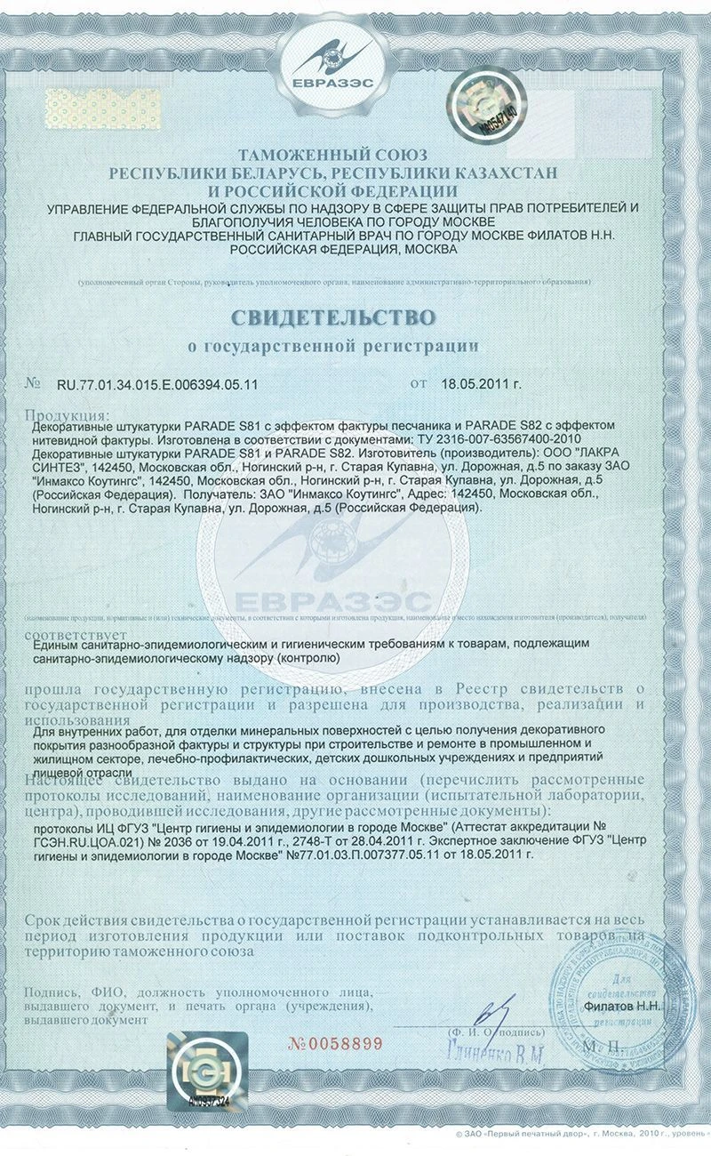 Сертифицирована для применения в детских и лечебных учреждениях.