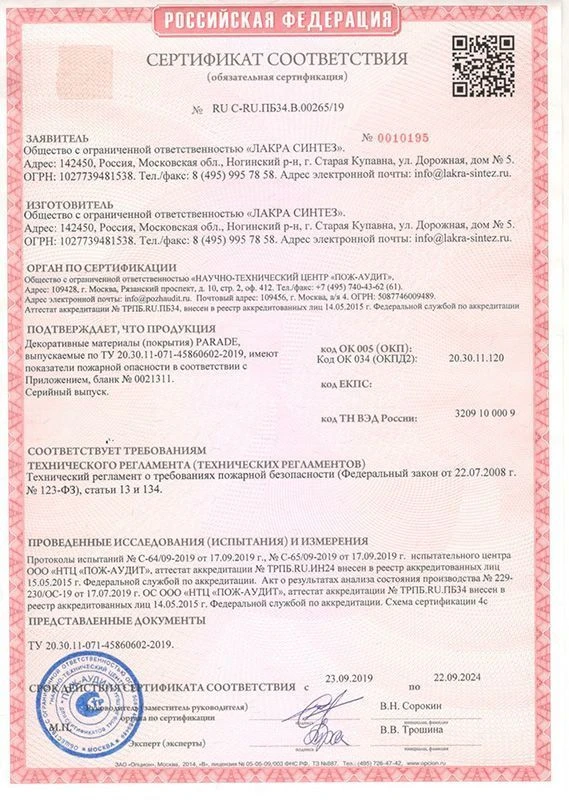 при температуре 20°С и влажности воздуха 70%: «от пыли» 3 ч, межслойная сушка 12 ч, полное 24 ч.