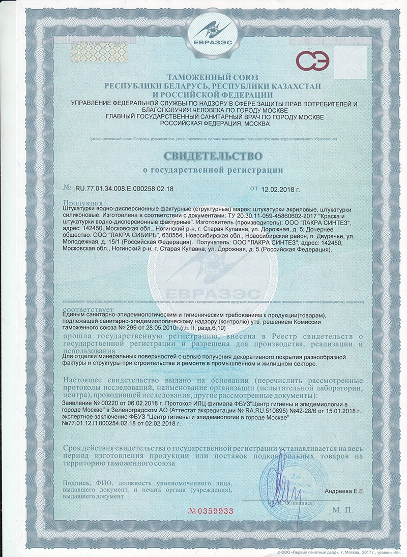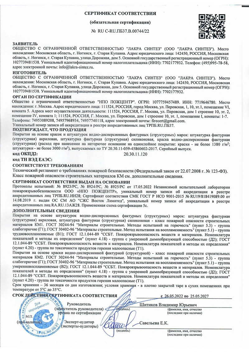 Водная акриловая дисперсия, диоксид титана, минеральные наполнители, этиленгликоль, функциональные добавки.