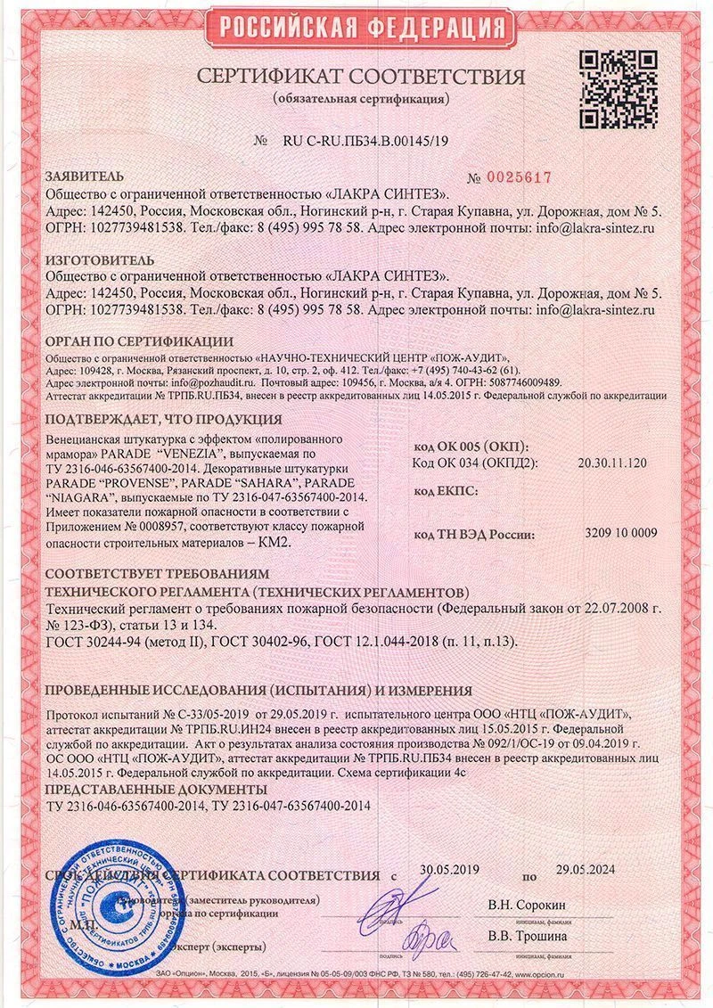 Изысканное элитное покрытие, придающее интерьеру особый шарм и богатство дворцов и особняков античных времен и эпохи Ренессанс. Элегантный вид, глубинное свечение и блеск чистейшего природного мрамора достигается благодаря нанесению на поверхность нескольких полупрозрачных тончайших слоев материала. Продукт готов к применению. Требует тщательной подготовки и выравнивания поверхности. Образует долговечное воздухопроницаемое покрытие. Специальный декоративный прозрачный воск для венецианских штукатурок PARADE VENEZIA WAX защитит покрытие от загрязнения и влаги. Сертифицирована для применения в детских и лечебных учреждениях.