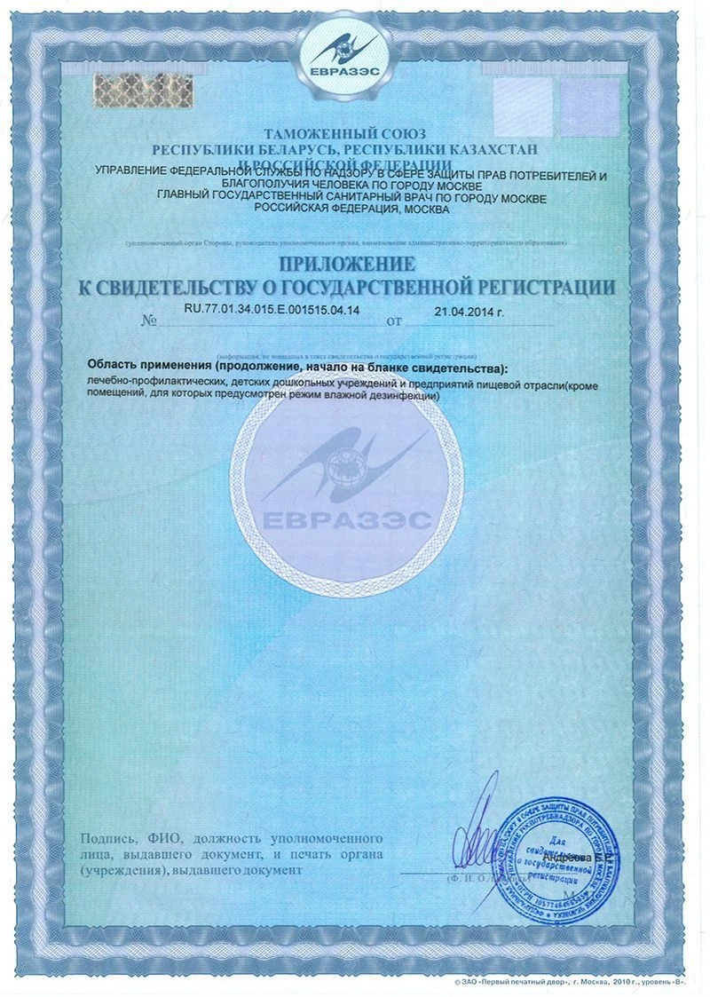 - Сертифицировано для применения в детских и лечебных учреждениях