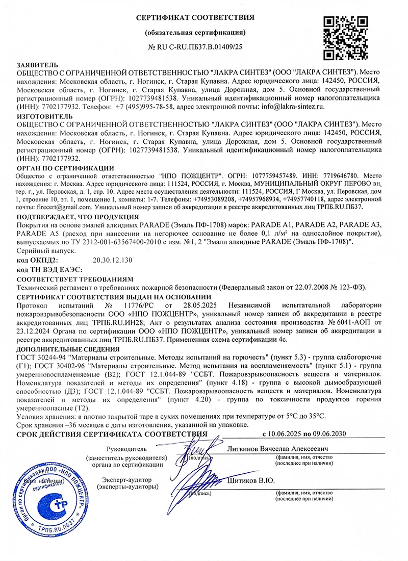 Эмаль на основе высококачественных алкидных смол и очищенного растворителя. Образуемая пленка обладает высокими декоративными и защитными свойствами.