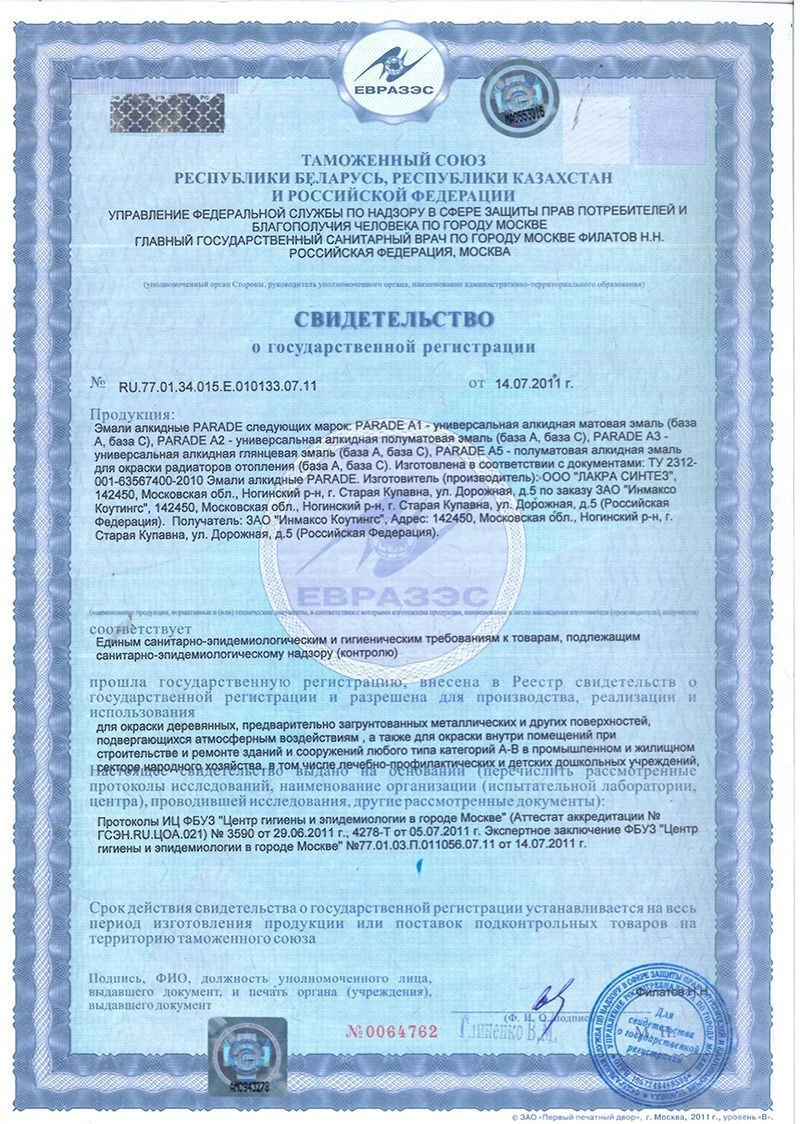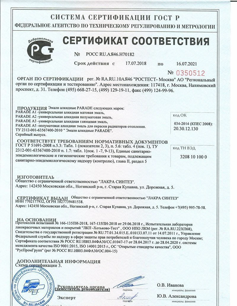Эмаль на основе высококачественных алкидных смол и очищенного растворителя. Образуемая пленка обладает высокими декоративными и защитными свойствами.