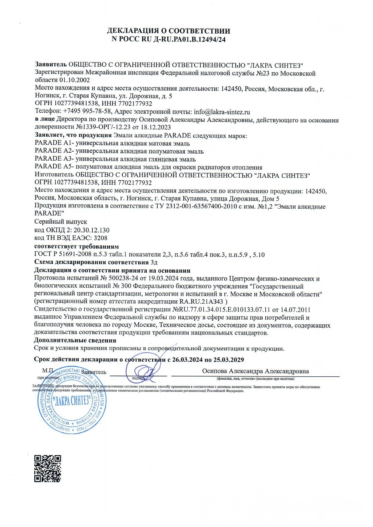 Эмаль в базе А - компьютерная колеровка PARADE (машинным) способом или вручную универсальными колерами.