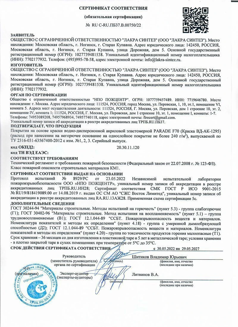 Благодаря специально разработанной формуле, краска способна растягиваться до 200%, даже при отрицательных температурах, что позволяет скрывать, сдерживать распространение старых и препятствовать появлению новых трещин: мелких («паутины») и крупных (до 3 мм). Образует трещиностойкое резиновое покрытие, сохраняет эластичность при колебаниях температур от -40°С до +50°С. Имеет отличное сцепление с большинством поверхностей, склонных к растрескиванию. Обладает превосходной укрывистостью, водо- и грязеотталкивающей способностью, высокой паропроницаемостью, стойкостью атмосферным воздействиям, УФ-излучению и мытью. Высокоэкологична – не содержит вредных растворителей, практически без запаха. Готовое покрытие имеет шелковисто-матовый блеск, не желтеет со временем.