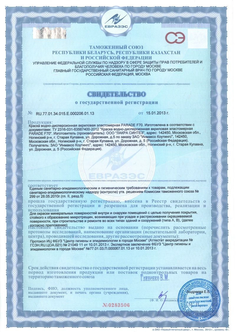Компьютерная колеровка PARADE (машинным способом) или вручную колерами PARADE для водных красок.