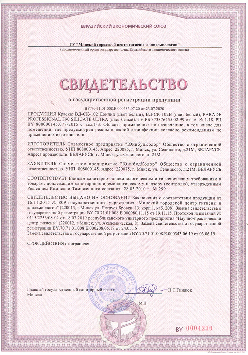 Профессиональная высококачественная водно-дисперсионная силикатная краска для внутренних и наружных работ. Предназначена для высококачественной окраски поверхностей снаружи и внутри зданий, ремонта и обновления старых покрытий, объектов реставрации, штукатурок с большим содержанием извести, в помещениях с постоянно высокой влажностью (ванных комнатах, помещениях бассейнов, душевых и др.). Образует глубокоматовое покрытие.
