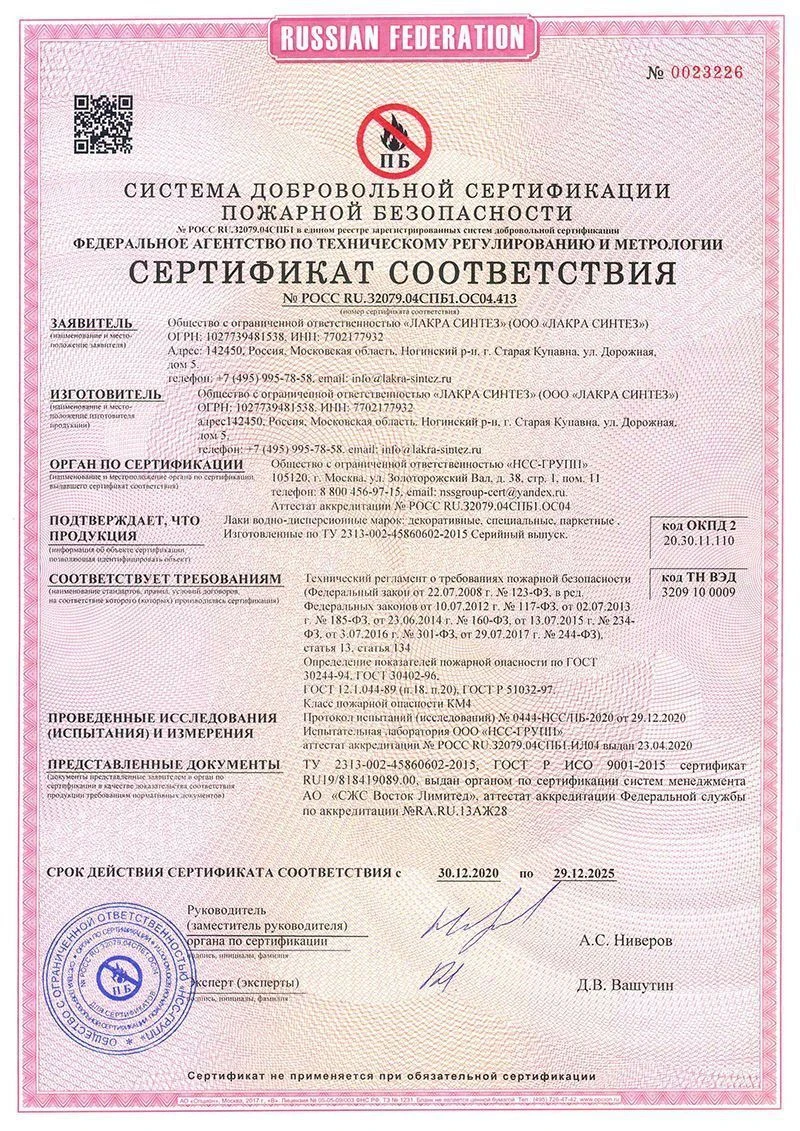 Водная дисперсия акрилового сополимера, водная дисперсия модифицированного воска, вода, функциональные добавки, диоксид кремния (матирующие добавки для матового лака).