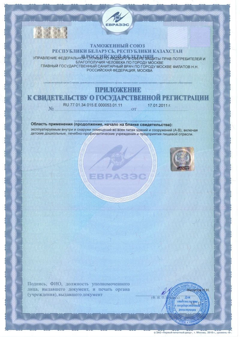 - Сертифицирована для применения в детских и лечебных учреждениях