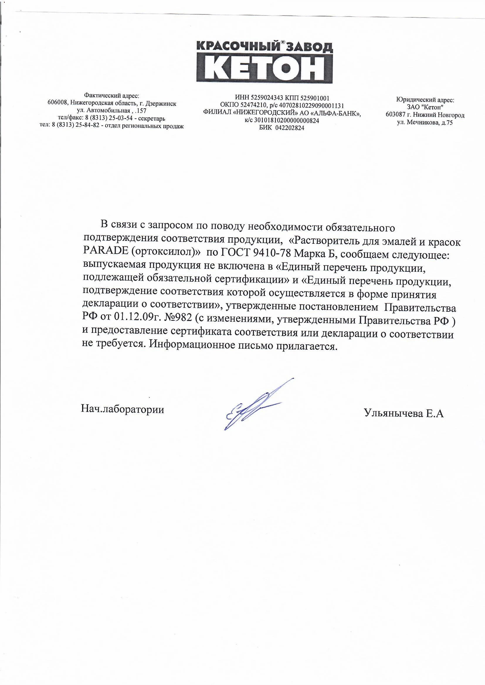 РАСТВОРИТЕЛЬ PARADE