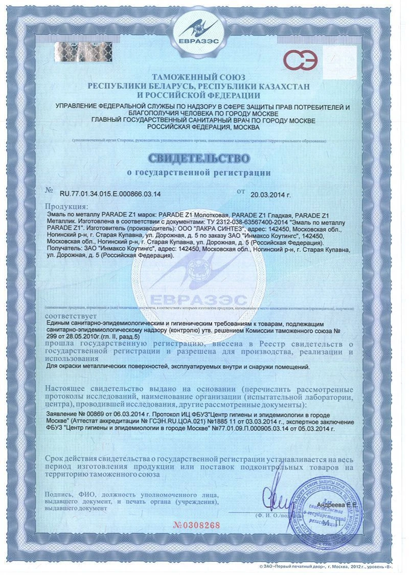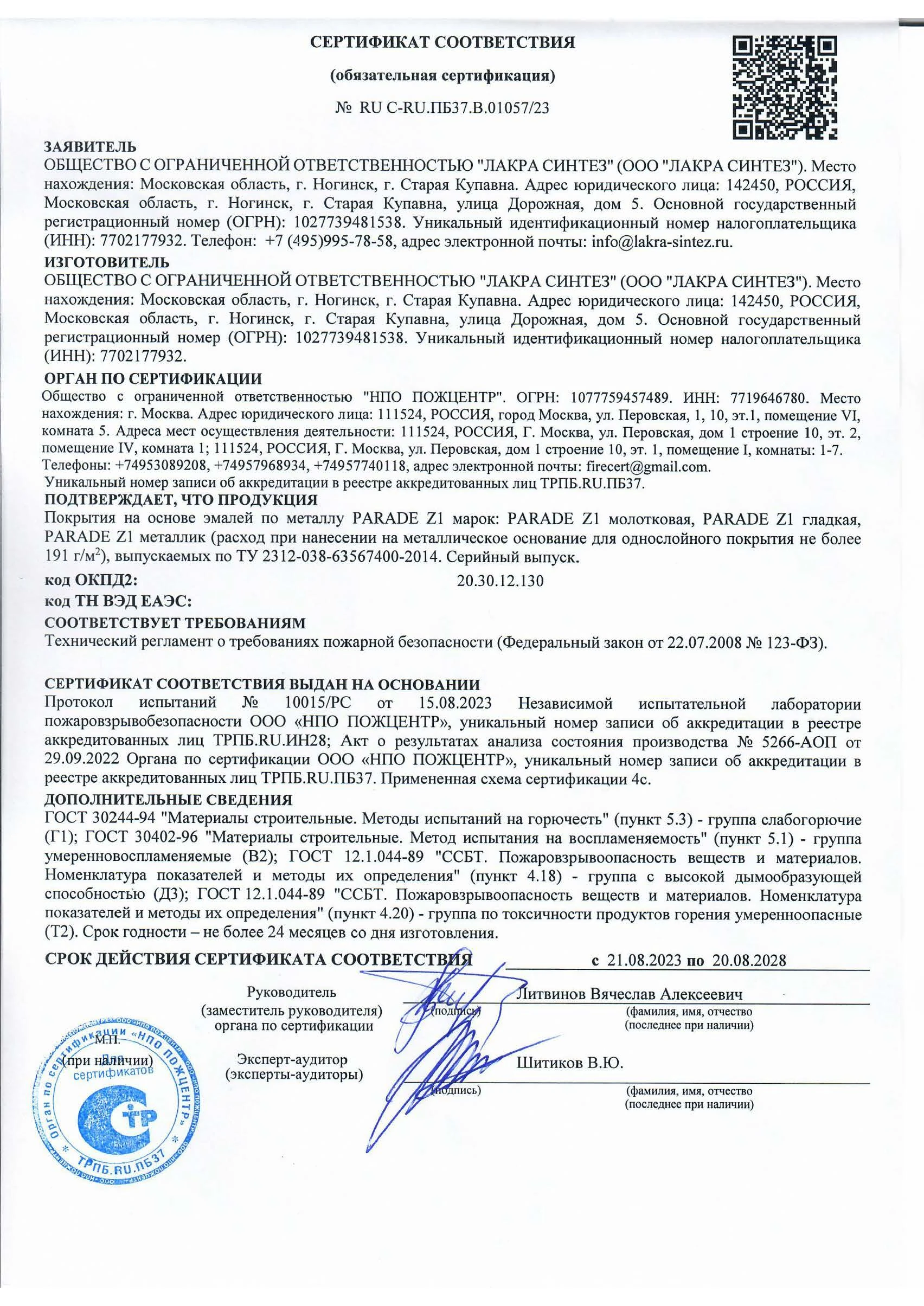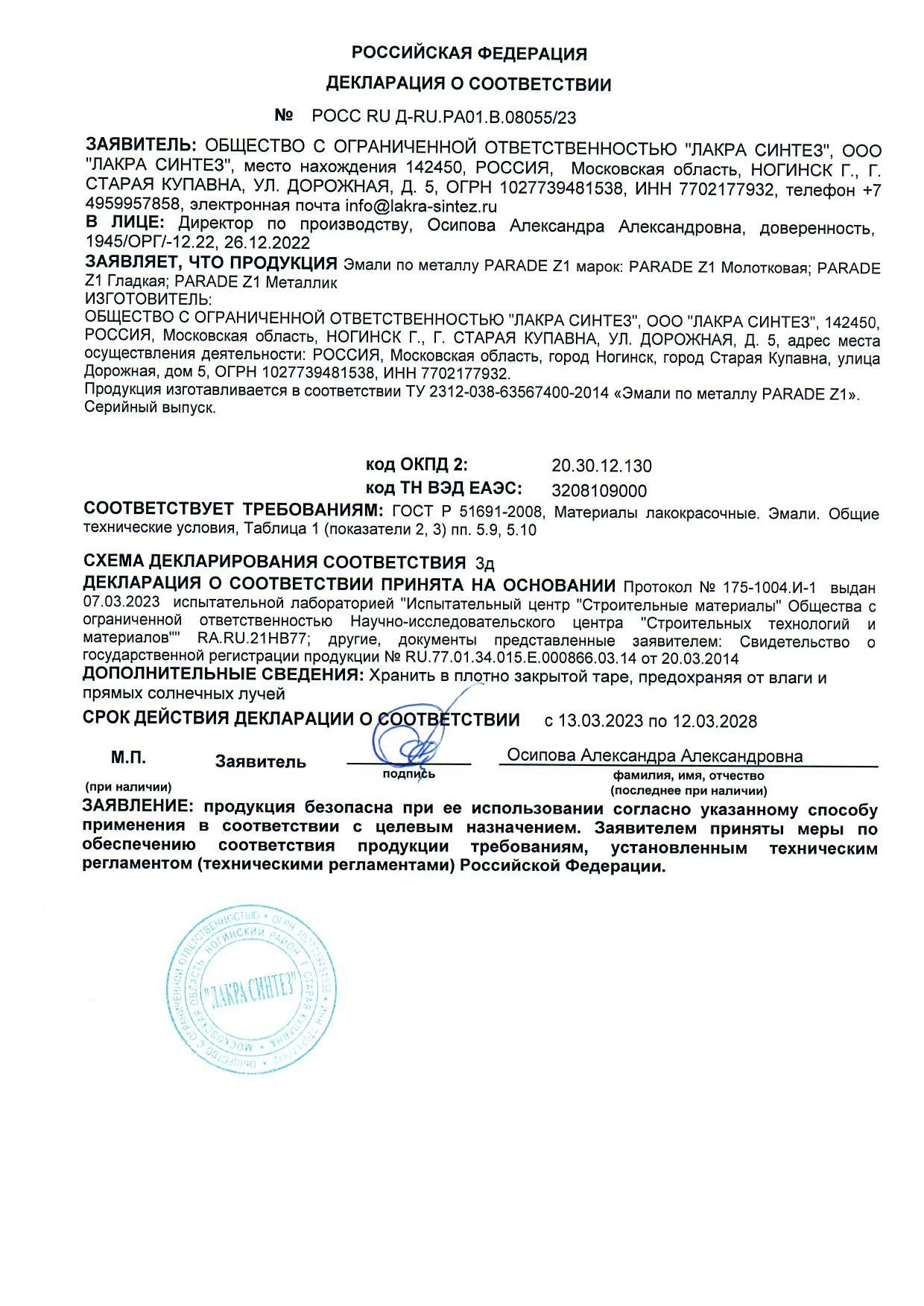 PARADE SPECIAL Z1 на основе модифицированной алкидной смолы