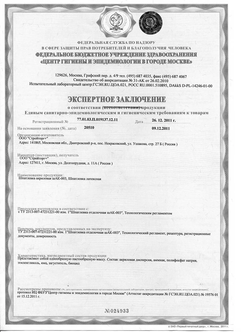 Шпатлевка финишная акриловая