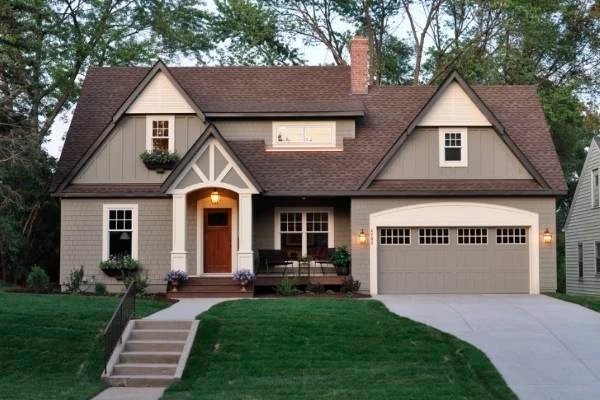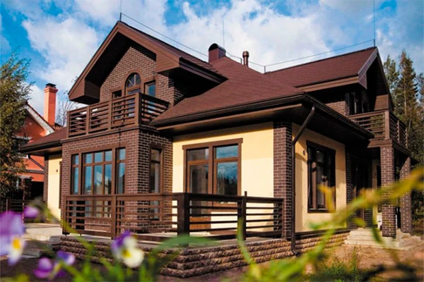 - Удачно смотрятся сочетание серого и коричневого цветов. Это землистые оттенки, которые гарантированно будут хорошо смотреться на любом фоне. Сочетание этих цветов подходит для фасада дома и крыши.